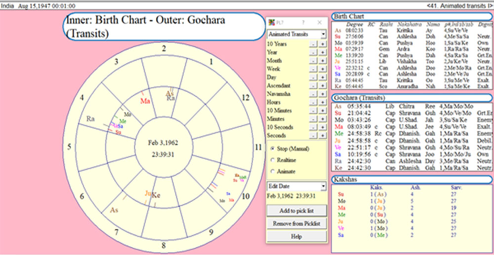 Before we move forward on this however, let us recall the planetary situation of 1962 January onwards till specially Oct’/Nov’1962 when the India-China war actually took place.